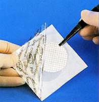 貼鼻部附固定片,內部有軟墊,頭頸部各由鬆緊帶固定。